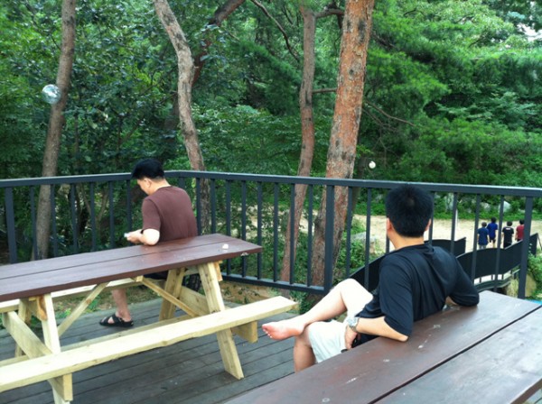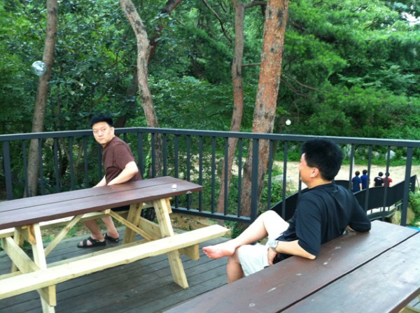 수련회 아침날 두 남자의 뒷모습.