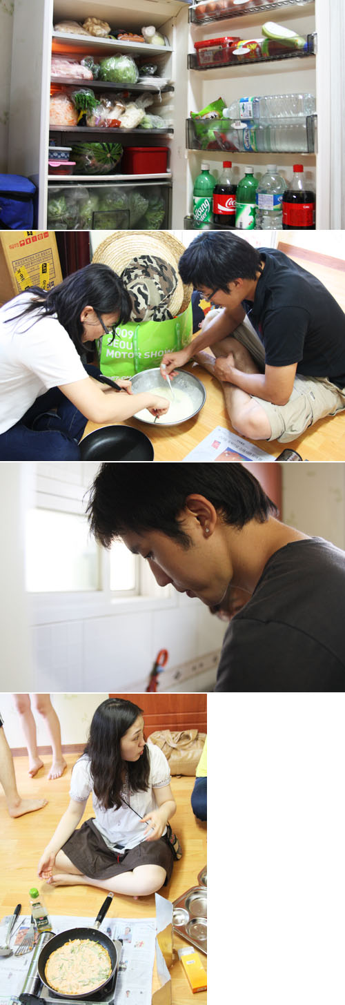 부침개 준비중인 명은언니와 재호오빠
