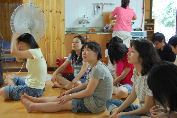 모여서 안내방송듣는중